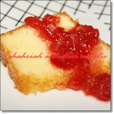 Muahahaa... lega dapat buat kek Pound kesukaan Bonda tersayang... minggu depan dia nak balik melaka so ini permintaan Bonda ler ni.. Fav cake Bonda Marble dengan Kek pound...kek zaman dedolu... tak tahu ler kenapa suka bebenau Bonda dengan dua jenis kek tu ekk.. tak termasuk kek lapis prune tu.. nanti i share dengan you all.. kek-kek wajib ada di meja apabila musim raya menjelma ekk.. so petang tadi i bikinkan ler bonda sekeping kek Pound.... suka bonda makan tau.. tau... i lagi ler suke.. sebab bonda suka... kalau i dah buh (VERSI 1) tu bermakna kek pound ni ada bermacam jenis dan cara ekk.. i share yang ni dulu oke.. nanti i share lagi... cayang kat you all.. terima kasih rajin menjengah blogs kesayangan ku ini ekk..:):)